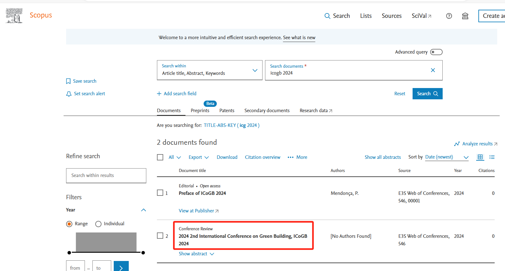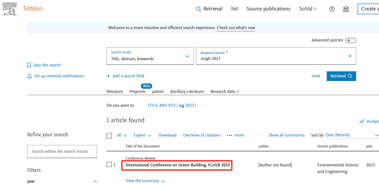 2024 2nd International Conference on Green Building (ICoGB 2024) has been published by "E3S Web of Conferences" (eISSN: 2267-1242, Volume 546), and indexed by Scopus and other major databases.