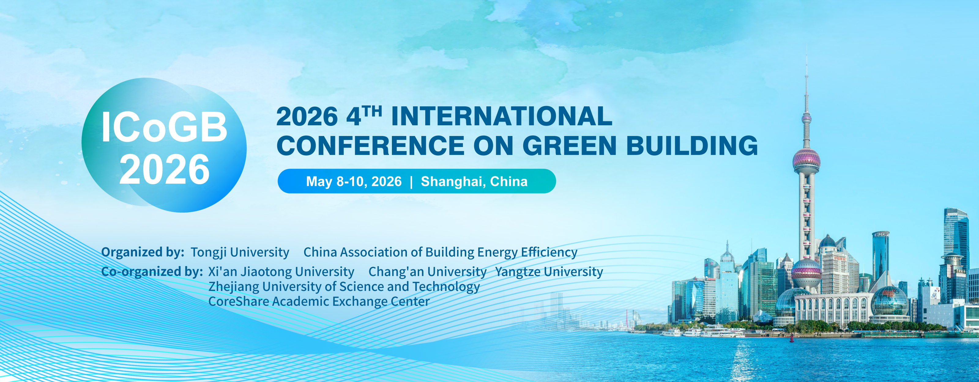 Organized by Tongji University and China Association of Building Energy Efficiency, and co-organized by Xi'an Jiaotong University, Chang'an University, Yangtze University, Zhejiang University of Science and Technology and CoreShare Academic Exchange Center, 2026 4th International Conference on Green Building (ICoGB 2026) will be held during May 8-10, 2026 in Shanghai, China. With researchers, scientists, engineers, and scholars as its contributors, ICoGB presents an open forum aiming to raise green building awareness, spur standards, and develop practical solutions for sustainable buildings by engaging the public, the industry, and the government in the world. We human beings anticipated a promising future with clean water and a clear sky. The illustrated future features better-performing buildings where energy, water, and materials are used sustainably.