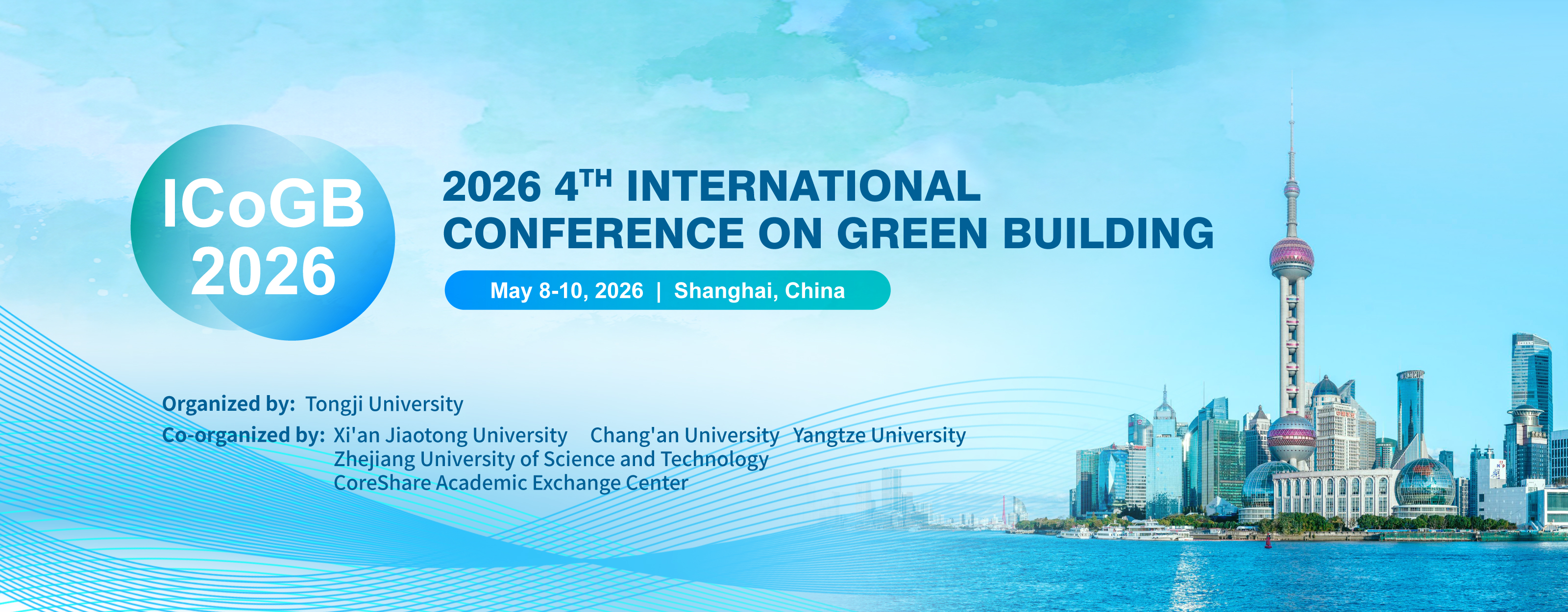Organized by Tongji University, and co-organized by Xi'an Jiaotong University, Chang'an University, Yangtze University, Zhejiang University of Science and Technology and CoreShare Academic Exchange Center, 2026 4th International Conference on Green Building (ICoGB 2026) will be held during April 24-26, 2026 in Shanghai, China. With researchers, scientists, engineers, and scholars as its contributors, ICoGB presents an open forum aiming to raise green building awareness, spur standards, and develop practical solutions for sustainable buildings by engaging the public, the industry, and the government in the world. We human beings anticipated a promising future with clean water and a clear sky. The illustrated future features better-performing buildings where energy, water, and materials are used sustainably.